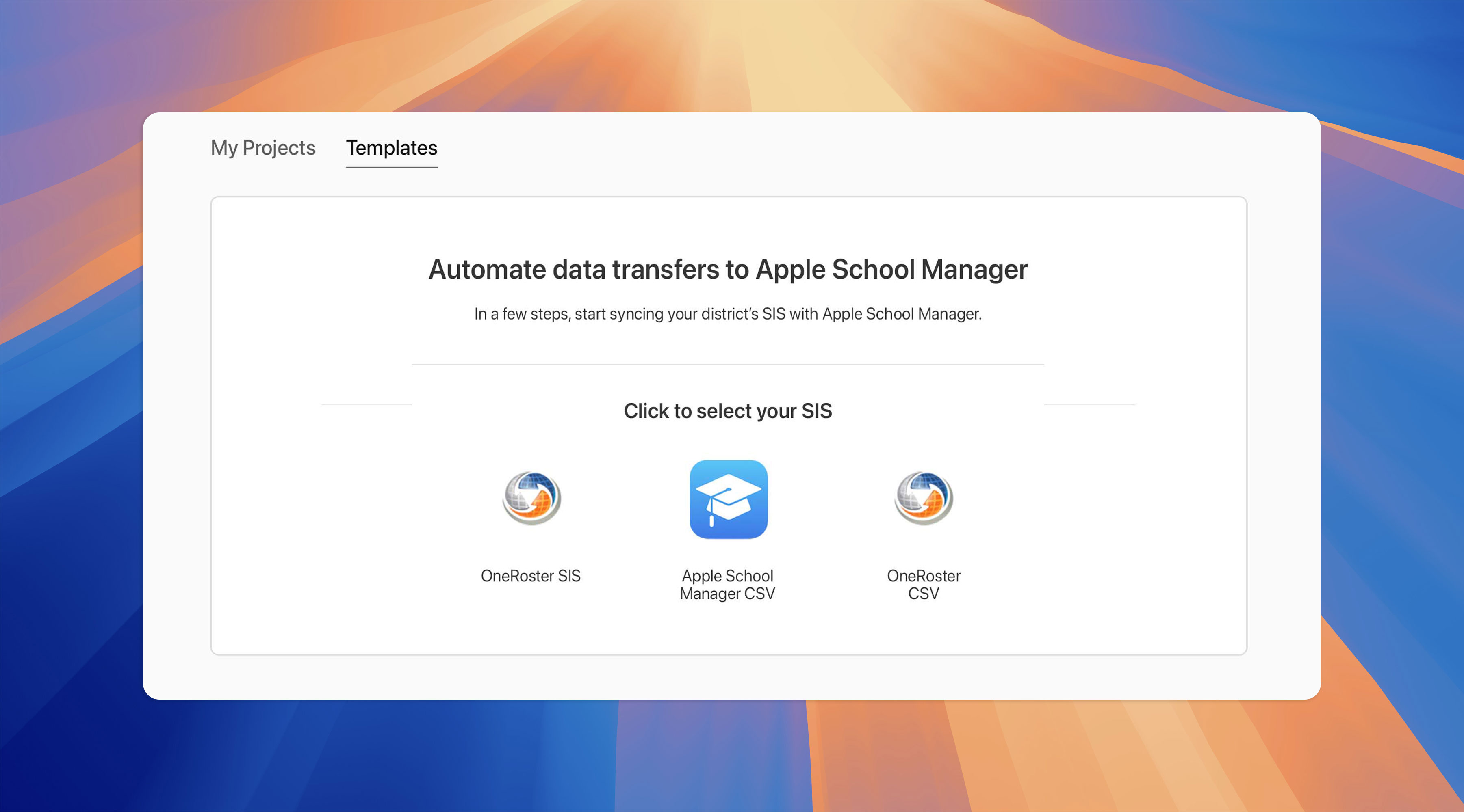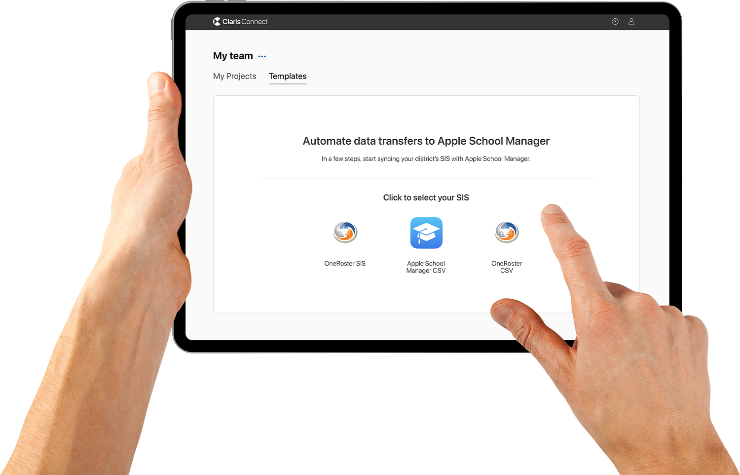 Easily pull data from your SIS and sync it to Apple School Manager automatically. The Claris tool is fast, secure, and OneRoster®-certified, giving you time savings and better data accuracy.