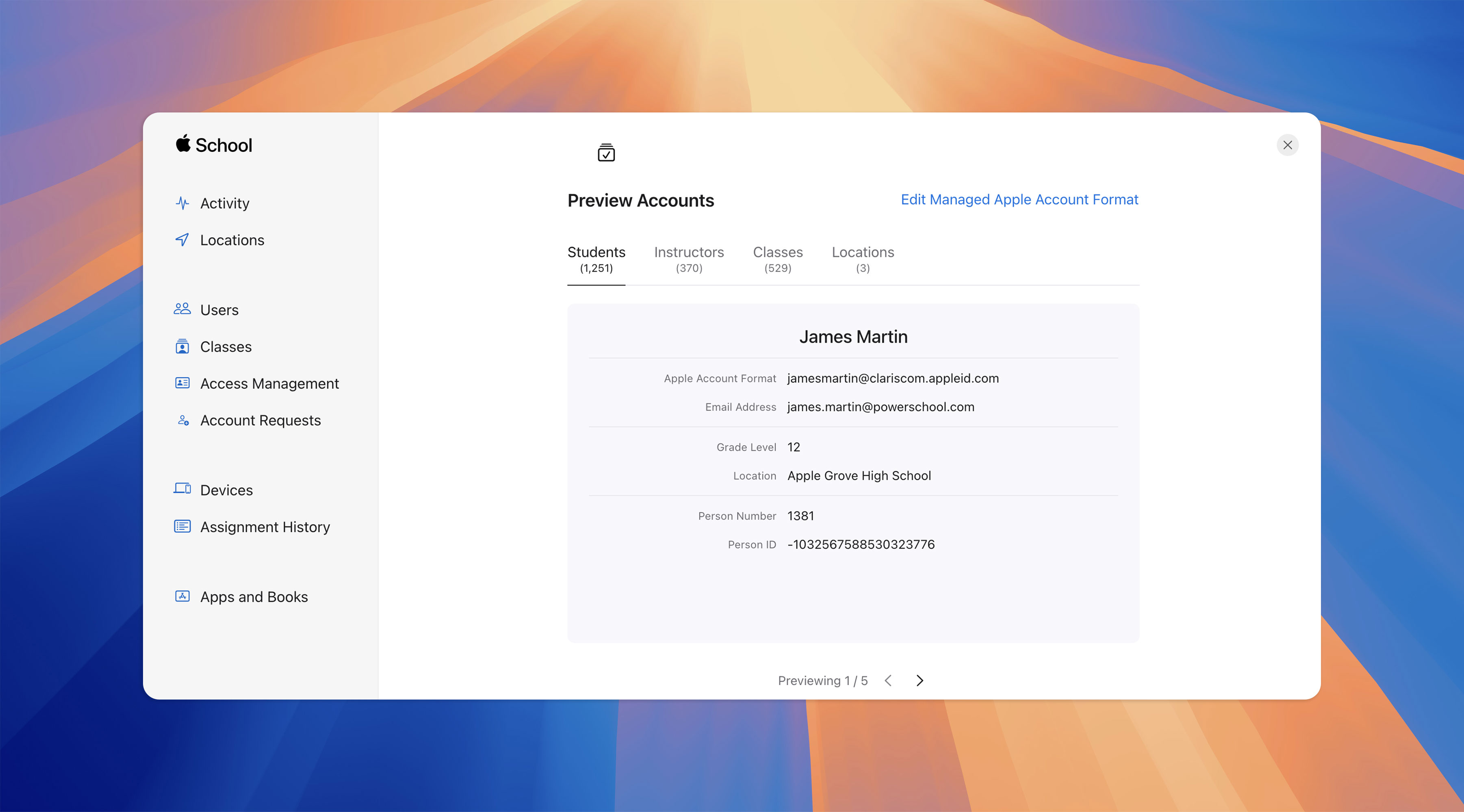 We have hundreds of integrations, and connecting our SIS with Apple School Manager is probably the easiest 30-minute setup I've ever done.