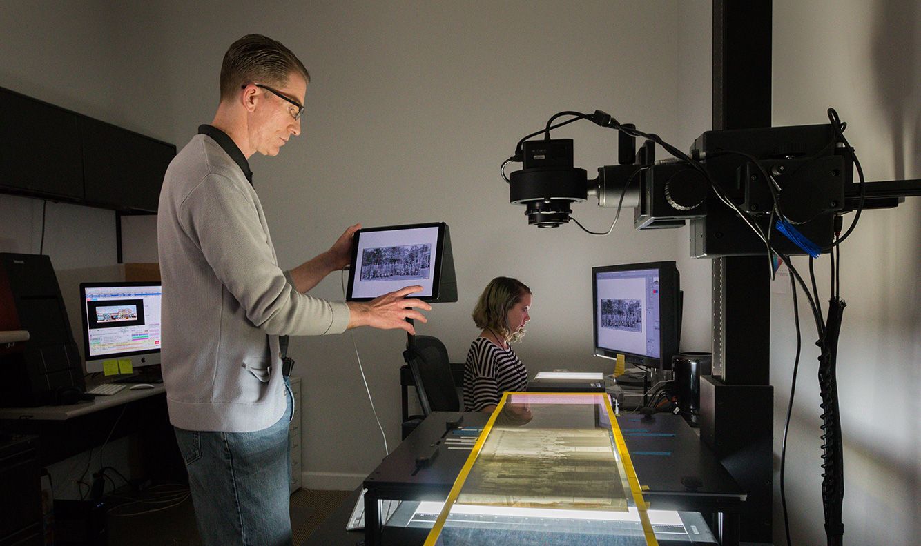One day each week, the staff at Panoramic Images works on scanning and archiving the Schutz Collection negatives. They hope to provide them to museums and collections that will preserve them for future generations, as well as sell prints to help finance the archiving of the remaining 7,500 negatives.